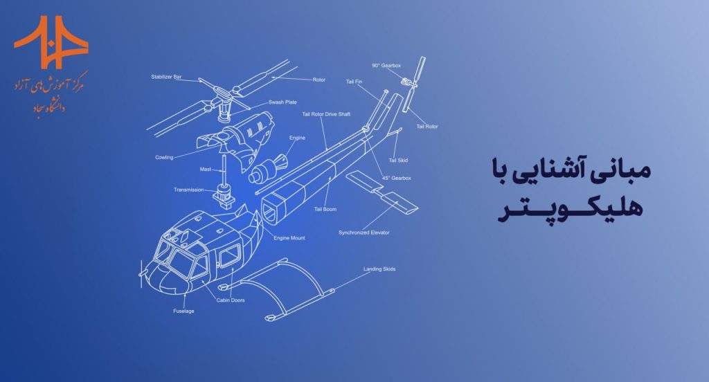 معرفی اجزای اصلی: روتور اصلی، روتور دم، بدنه، موتور، گیربکس